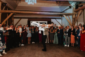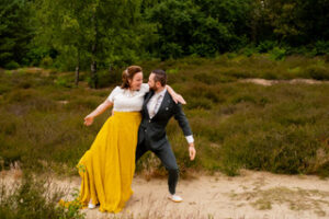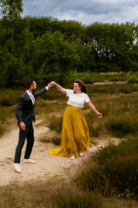Anneloes en Bas hadden tijdens de 2e les wel een verassing mede te delen, namelijk dat ze in verwachting zijn. Dat zorgde uiteraard voor enige aanpassing in de choreografie. Geen lifts en spins of andere gevaarlijke dingen, uiteindelijk is er een mooie op maat gemaakte dans gecreërt. Tijdens de fotoshoot op de bruiloft hebben ze de dans ook nog even gedaan en hierbij wat foto’s voor een indruk en inspiratie. Deze fantastische foto’s hebben ze laten maken door Berdien van der leij meer info over haar is te vinden op haar site www.whatagloriousfeeling.nl